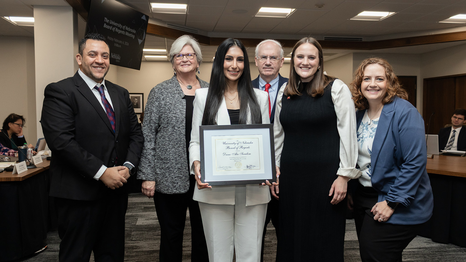 The Board of Regents is pleased to present a KUDOS award to Dana Abu Swailem, Business Systems Analyst at the University of Nebraska—Lincoln.